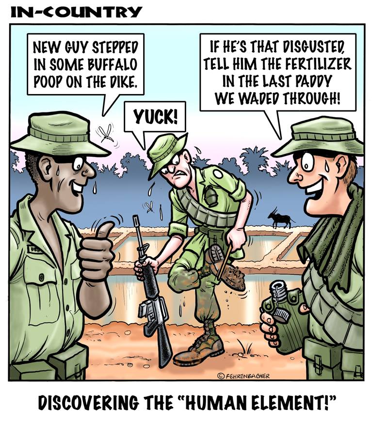 Phil enlisted in the Army in 1965 where he served for years in Vietnam. He became a graphic designer and has worked for the state of Oregon for 26 years. He retired in 2003 and started the Cartoon "In-Country". The cartoons reflect his experiences during his tour of duty in South Vietnam.