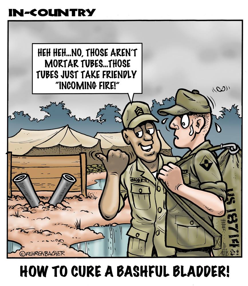 Phil enlisted in the Army in 1965 where he served for years in Vietnam.  He became a graphic designer and has worked for the state of Oregon for 26 years.  He retired in 2003 and started the Cartoon "In-Country".  The cartoons reflect his experiences during his tour of duty in South Vietnam.