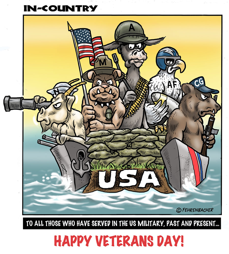 Phil enlisted in the Army in 1965 where he served for years in Vietnam.  He became a graphic designer and has worked for the state of Oregon for 26 years.  He retired in 2003 and started the Cartoon "In-Country".  The cartoons reflect his experiences during his tour of duty in South Vietnam.
