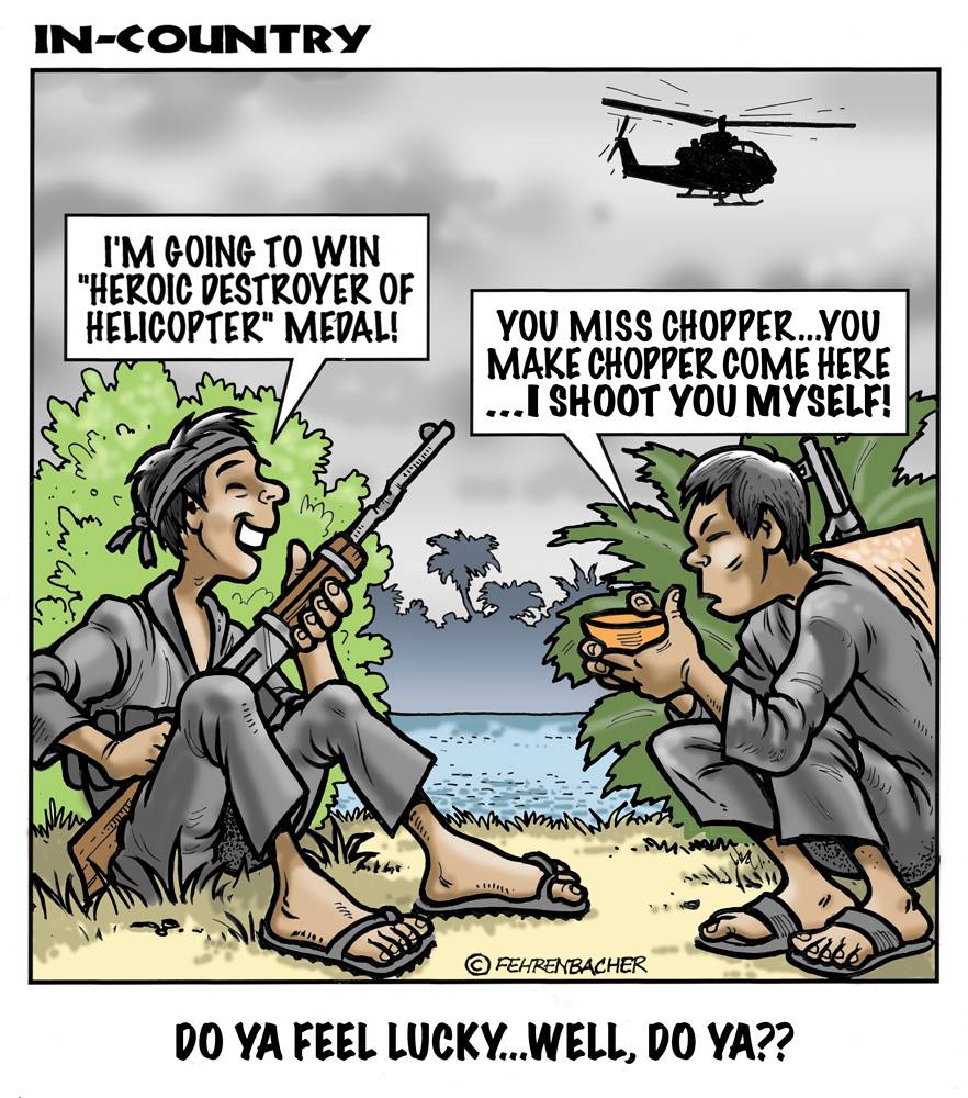 Phil enlisted in the Army in 1965 where he served for years in Vietnam. He became a graphic designer and has worked for the state of Oregon for 26 years. He retired in 2003 and started the Cartoon "In-Country". The cartoons reflect his experiences during his tour of duty in South Vietnam.