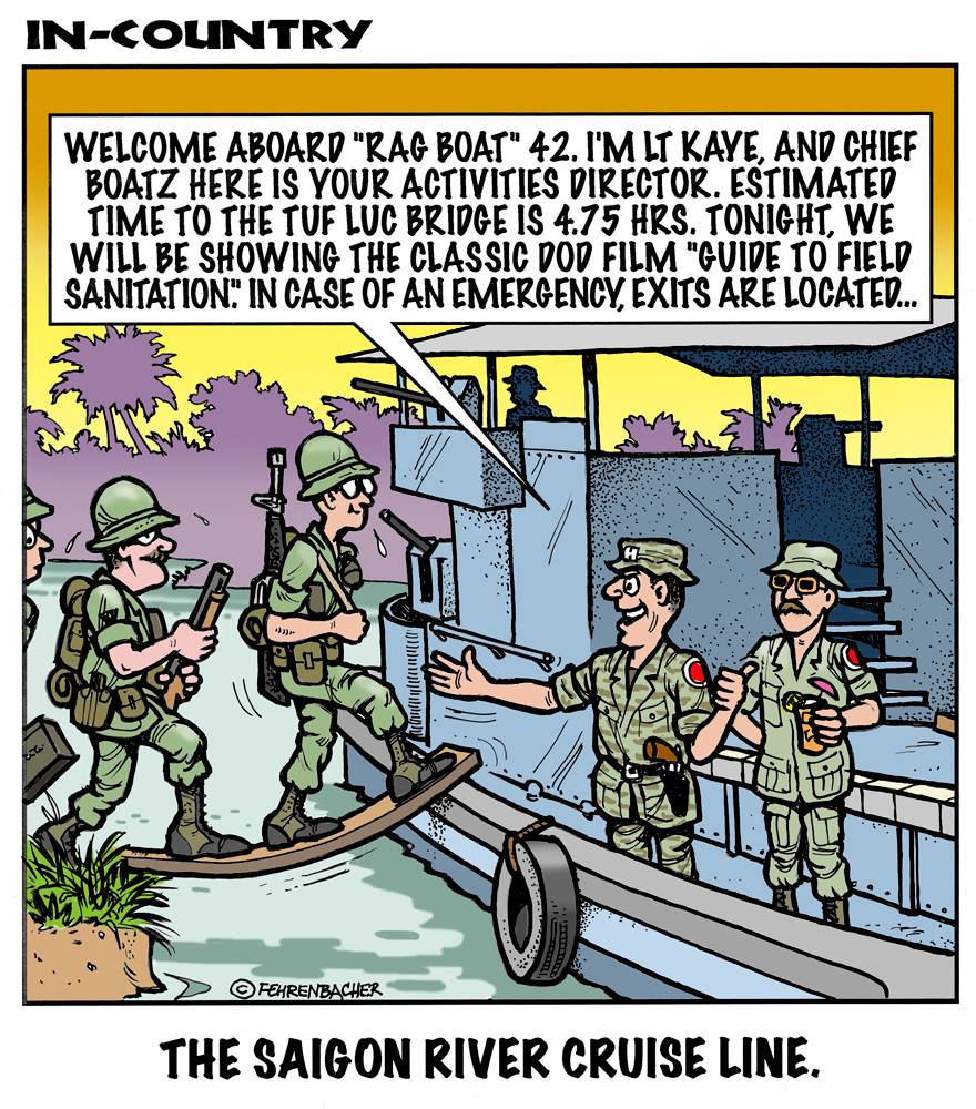 Phil enlisted in the Army in 1965 where you served for years in Vietnam. He became a graphic designer and has worked for the state of Oregon for 26 years. He retired in 2003 and started the Cartoon "In-Country". The cartoons reflect his experiences during his tour of duty in South Vietnam.