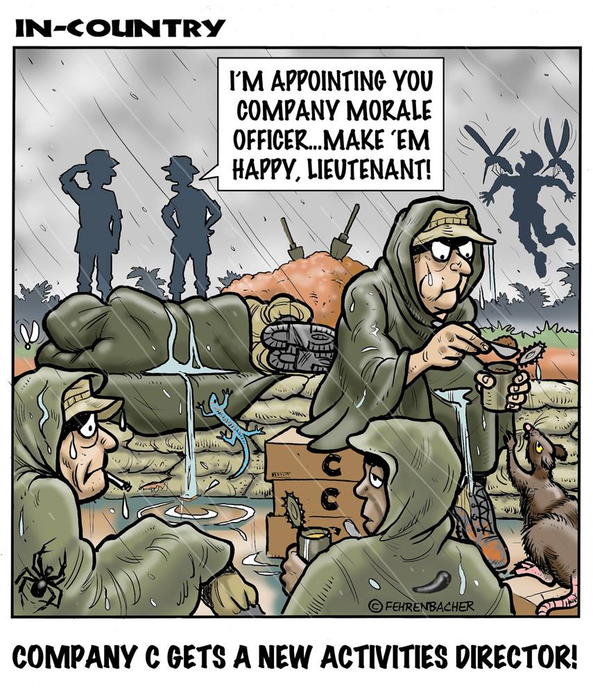Phil enlisted in the Army in 1965 where he served for years in Vietnam.  He became a graphic designer and has worked for the state of Oregon for 26 years.  He retired in 2003 and started the Cartoon "In-Country".  The cartoons reflect his experiences during his tour of duty in South Vietnam.